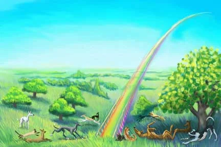 Just this side of heaven is a place called Rainbow Bridge.When an animal dies that has been especially close to someone here, that pet goes to Rainbow Bridge. There are meadows and hills for all of our special friends so they can run and play together. There is plenty of food, water and sunshine, and our friends are warm and comfortable. All the animals who had been ill and old are restored to health and vigor. Those who were hurt or maimed are made whole and strong again, just as we remember them in our dreams of days and times gone by. The animals are happy and content, except for one small thing; they each miss someone very special to them, who had to be left behind.